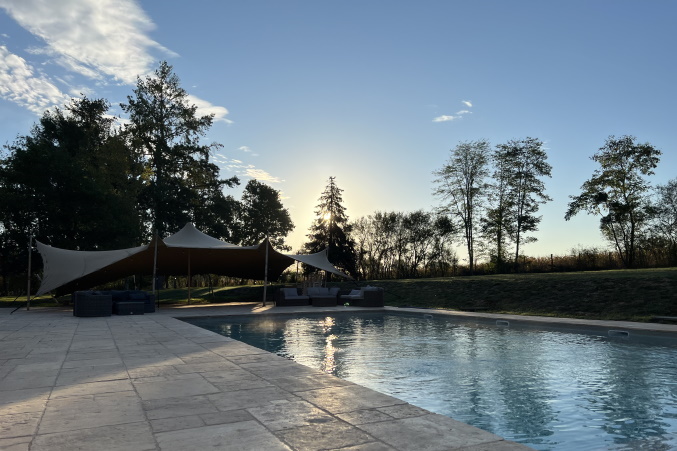 Côté extérieur, vous disposerez d’une piscine avec sa grande terrasse aménagée de transats, parasols et canapés, d’un espace aménagé avec des bancs en bois, d’une gloriette pour les cérémonies, ainsi que d’une tente nomade pour de beaux cocktails abrités.